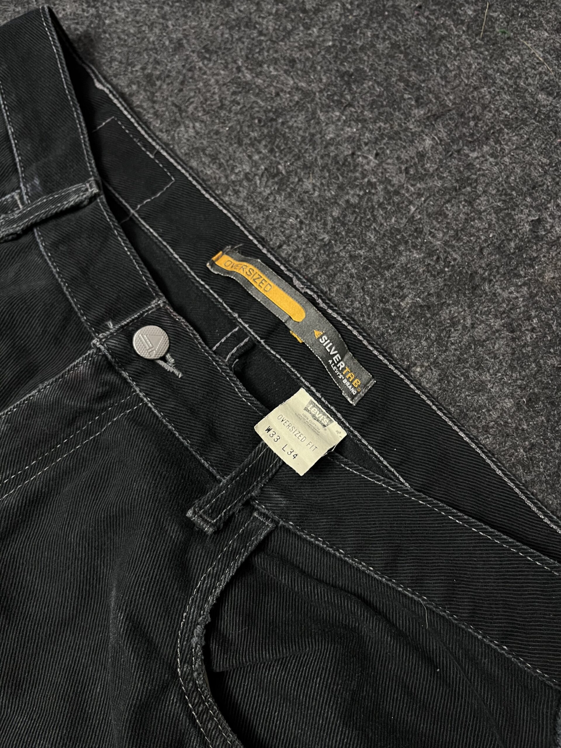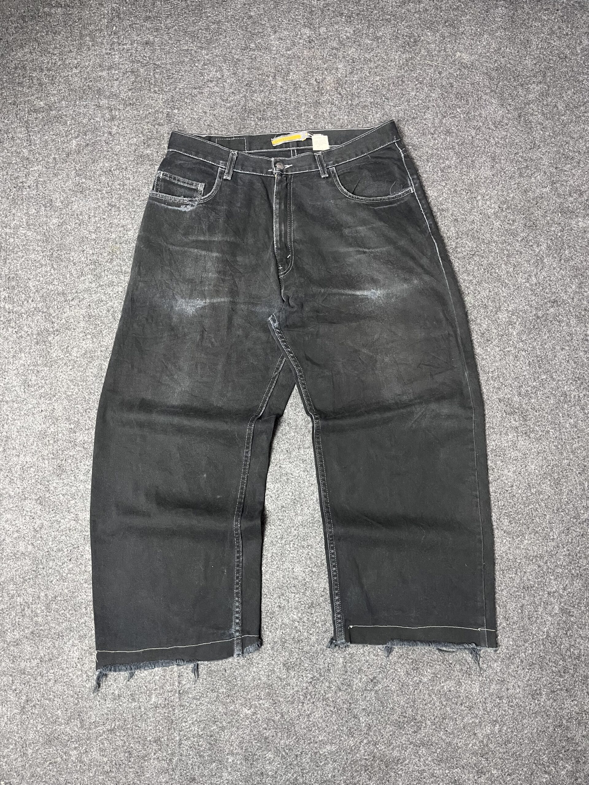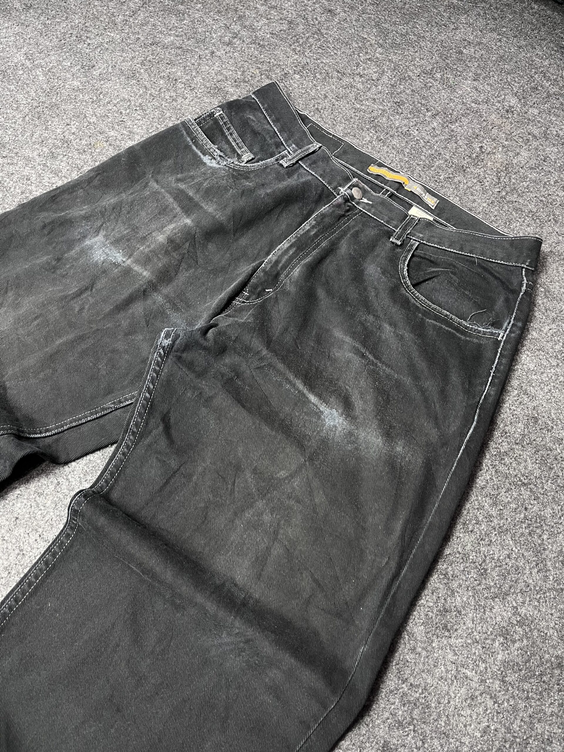 Premium thrift Levi’s black denim jeans with vintage wash.