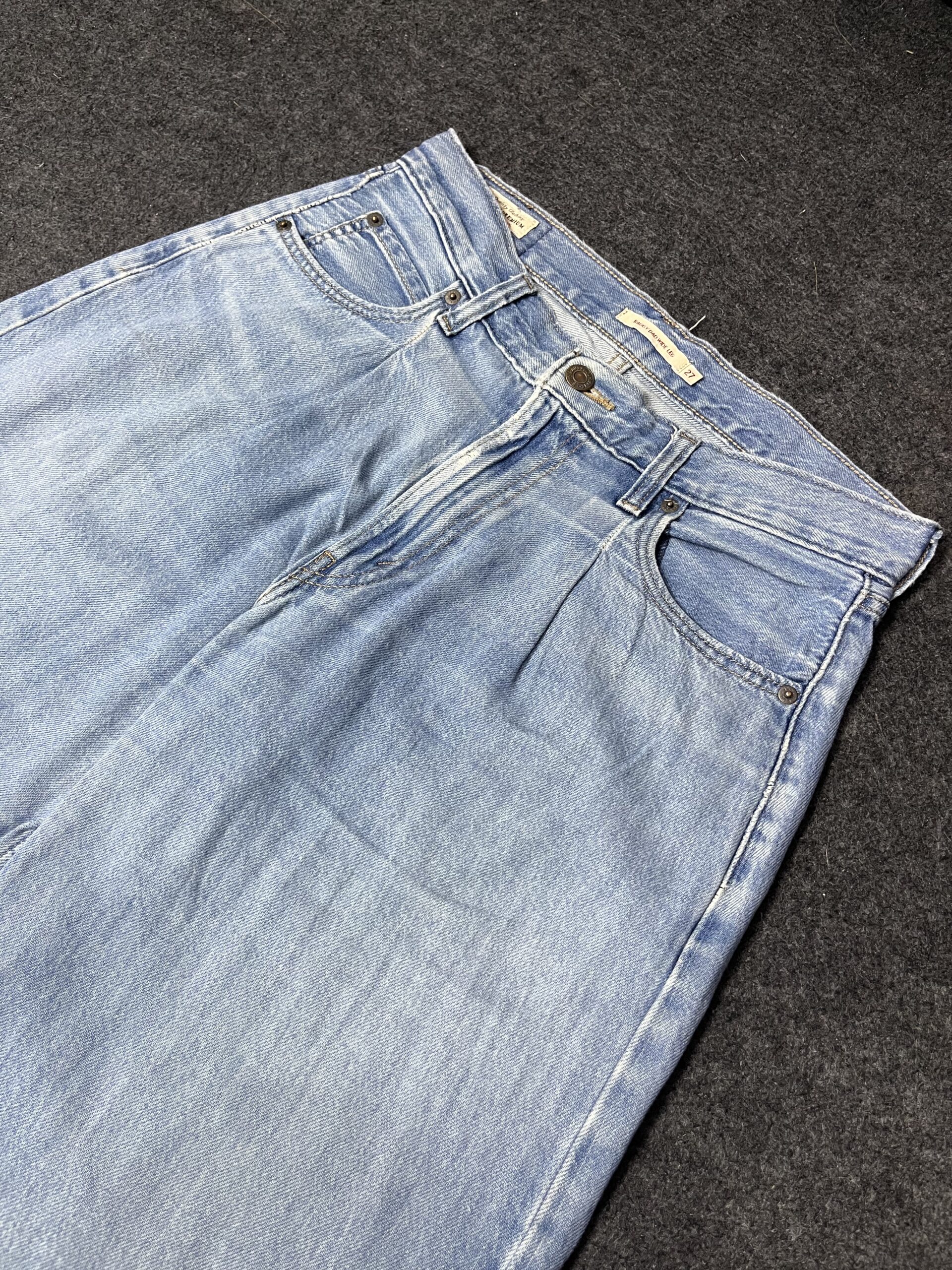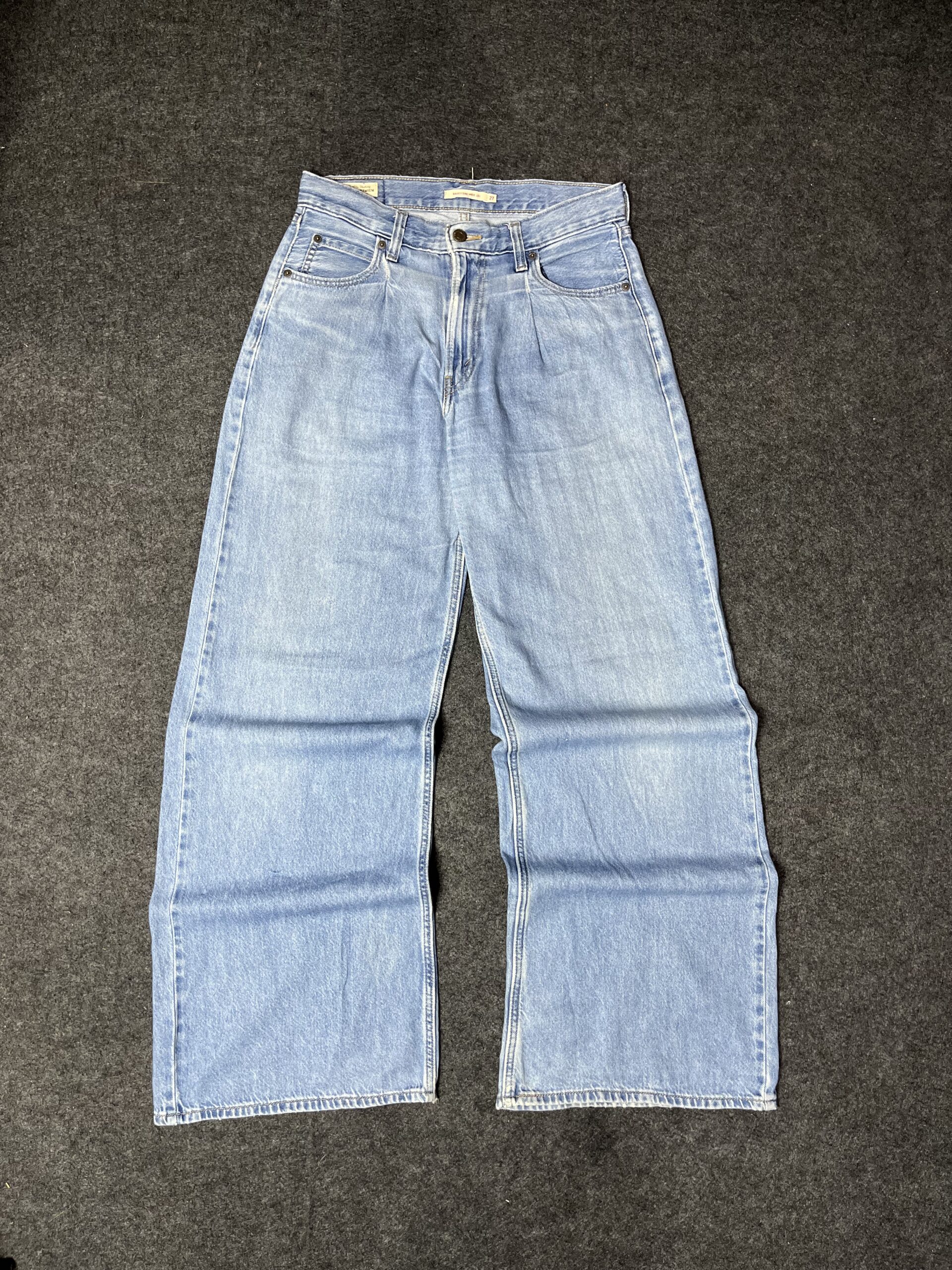 Upgrade your wardrobe with these classic vintage light blue denim jeans. Featuring a timeless faded wash and durable denim fabric, these jeans offer both style and comfort for everyday wear.